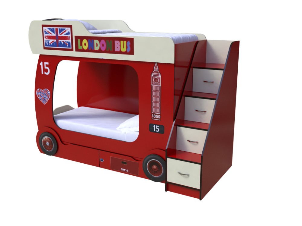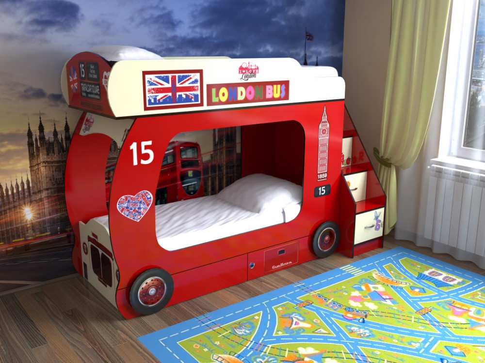 Кровать-чердак Автобус 2 с лестницей (красный)