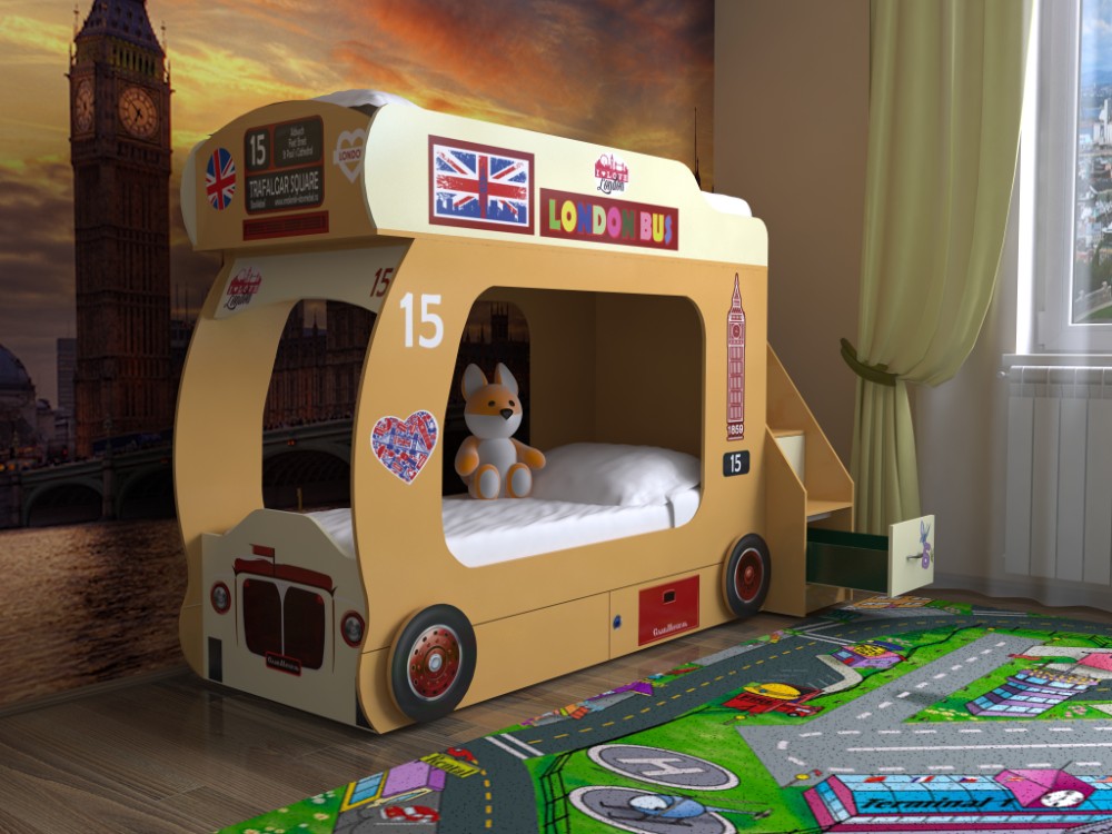 Кровать-чердак Автобус 2 с лестницей (оранжевый)
