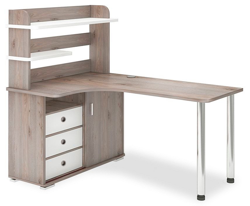 - Комплектация: надстройка:, 2 полки; тумба:, 1 дверца, 3 ящика, полки.