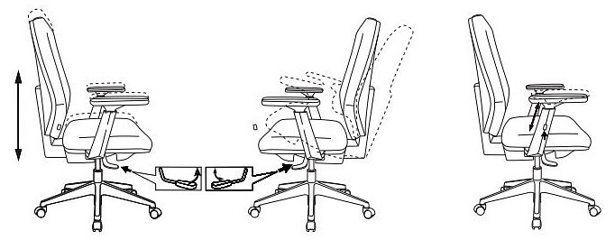 Пружинно-винтовой механизм качания спинки без фиксации. Регулировка высоты - газлифт. Крестовина пластиковая. Подлокотники пластиковые. Колеса для паркета и ламината с накладкой PU. Соответствует стандарту BIFMA.