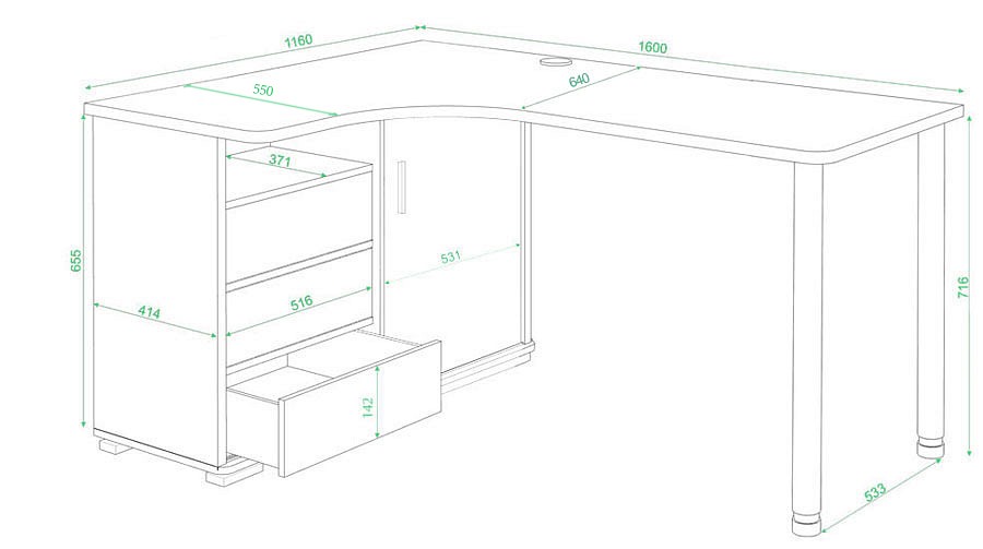 - Материал: ЛДСП Е1, ЛДСП Е1, ЛДСП Е1.