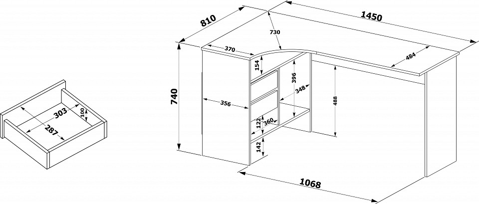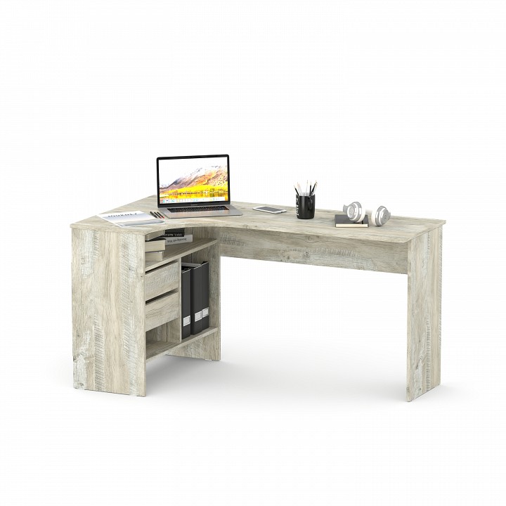 Угловой письменный стол СПм-25 — идеально решение для обустройства полноценного рабочего места в домашнем кабинете или офисе. На широкой столешнице найдется место для большого монитора, клавиатуры или ноутбука, а также сопутствующей техники. В выдвижных ящиках и открытых отделениях удобно хранить книги и канцелярию. Кроме того, конструкцией предусмотрена ниша под системный блок.