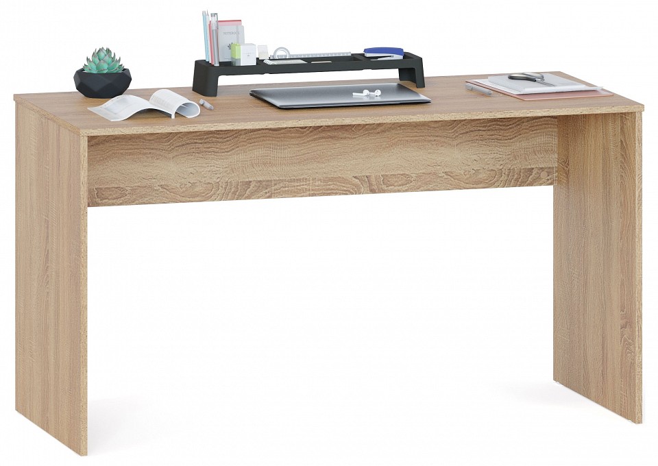 Письменный стол СПМ-352 — стильный вариант для меблировки офисного пространства, для домашнего кабинета, а также рабочего места школьника. Полноценная ширина модели позволит организовать комфортное рабочее место и разместить под рукой всё необходимое. Изделие смотрится эффектно благодаря минималистичному стилю, который подчеркивает рабочую атмосферу. Лаконичный дизайн модели позволит вписать стол в любой готовый интерьер офиса и дома.