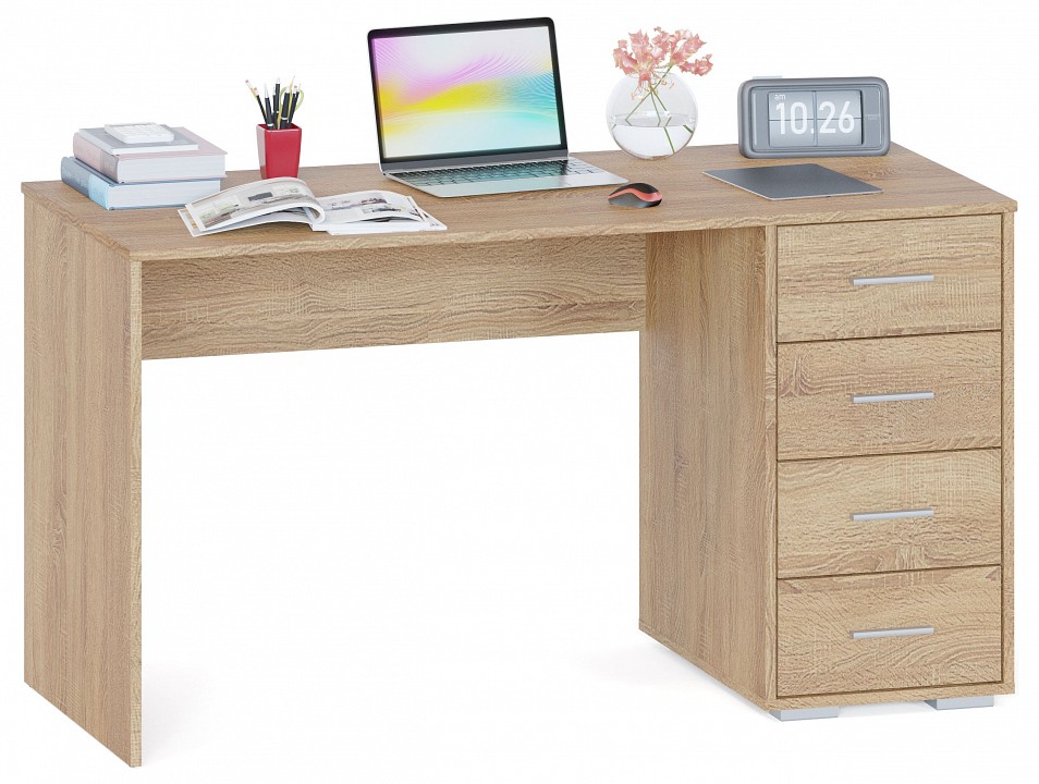 Письменный стол СПМ-354 с тумбой — функциональный вариант для меблировки офисного пространства, для домашнего кабинета, а также рабочего места школьника. Изделие имеет тумбу с вместительными выдвижными ящиками с шариковыми направляющими. Четыре ящика позволяют организовать функциональню систему хранения на рабочем месте. Ширина модели позволит организовать полноценное рабочее место и разместить под рукой всё необходимое. Изделие смотрится эффектно благодаря классическому стилю, который подчеркивает рабочую атмосферу. Лаконичный дизайн модели позволяет вписать стол в любой интерьер офиса и дома.