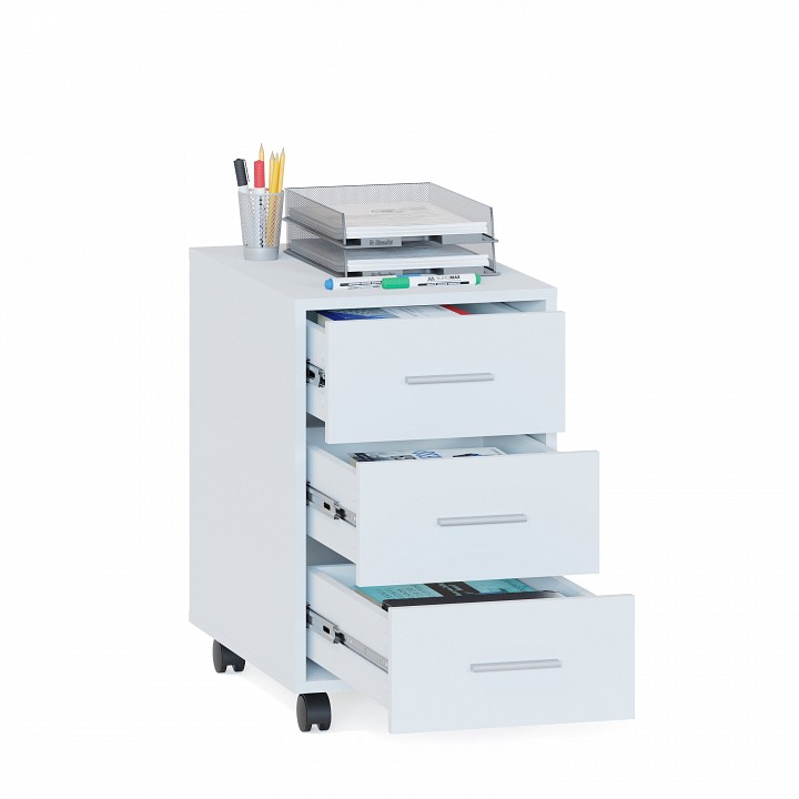 Тумба КТ-350 —универсальная современная тумба с выдвижными ящиками для офиса и для дома. Размеры (ВхШхГ): 634 х 387 х 560 мм. Отличный вариант для меблировки рабочей зоны. Тумба имеет четыре выдвижных ящика для хранения на шариковых направляющих полного движения. Внутренние размеры ящика — 346 х 168 мм. Тумба оснащена поворотными колесами для удобного перемещения по комнате.