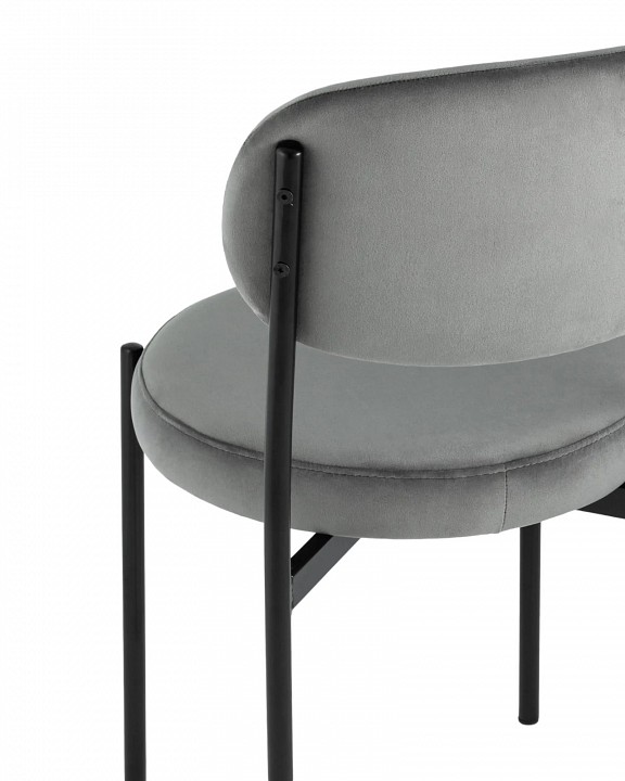 Обеденный стул Бриф для кухни подходит для современных и смешанных интерьеров и отлично смотрится в комплекте. Мягкое круглое сиденье и эргономичная спинка способствуют комфортному положению за столом. Обивка выполнена из прочного износостойкого велюра, ножки изготовлены из металла в черном цвете. На ножках дополнительно предусмотрены специальные подпятники, которые предотвращают скольжение и повреждение напольного покрытия.