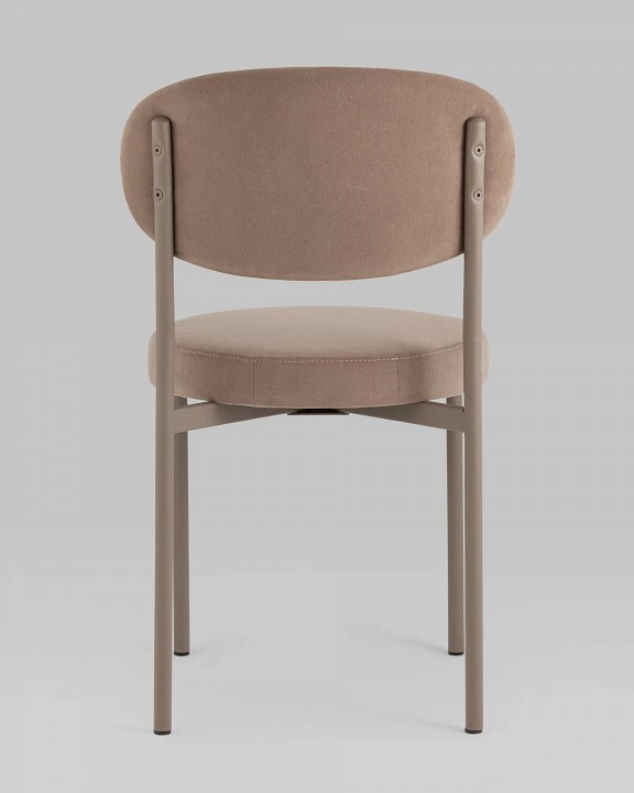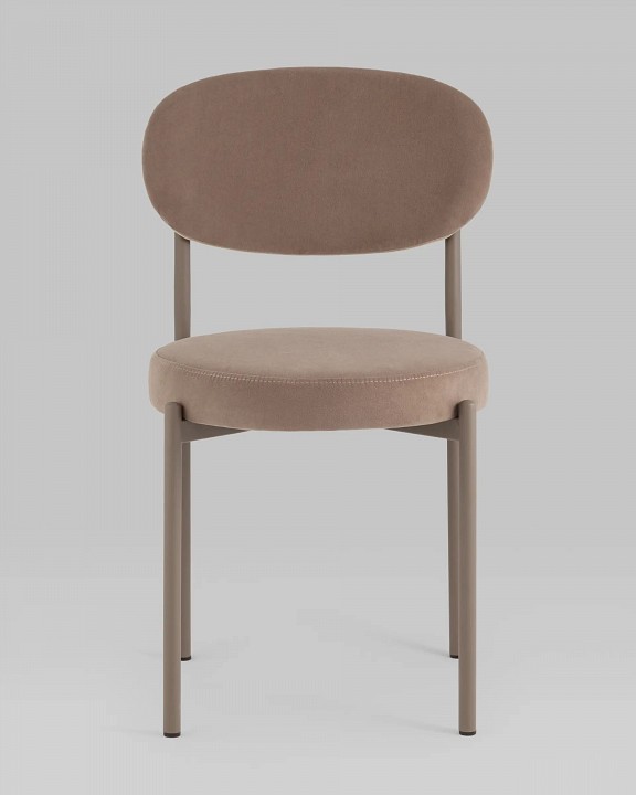 Обеденный стул подходит для современных и смешанных интерьеров и отлично смотрится в комплекте. Мягкое круглое сиденье и эргономичная спинка способствуют комфортному положению за столом. Обивка стула выполнена из прочного износостойкого велюра, но при этом мягкого и приятного на ощупь материала. На металлических ножках дополнительно предусмотрены специальные подпятники, которые предотвращают скольжение и повреждение напольного покрытия. Прочный металлический каркас выдерживает нагрузку до 120 кг.