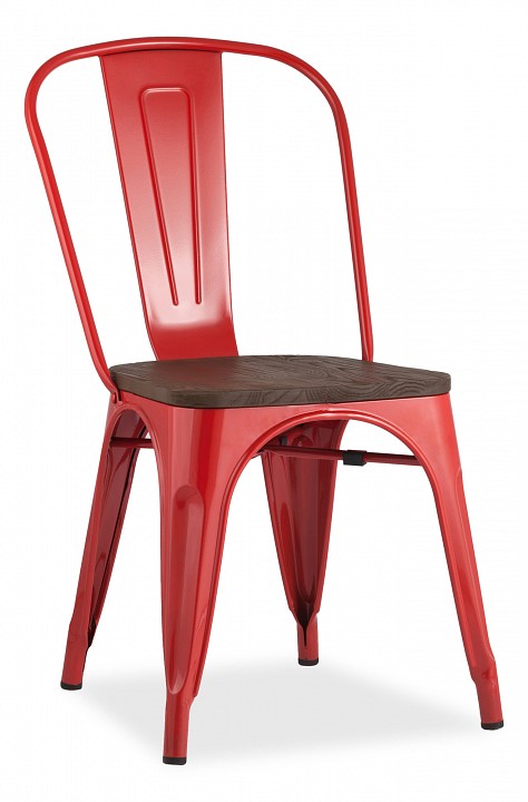 Стул Tolix разноцветная красный глянцевый, темное дерево 450x515x845.