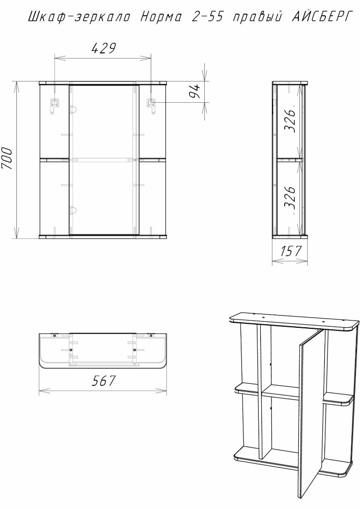 Шкаф-зеркало Норма Айсберг 2-55 (правый/левый)