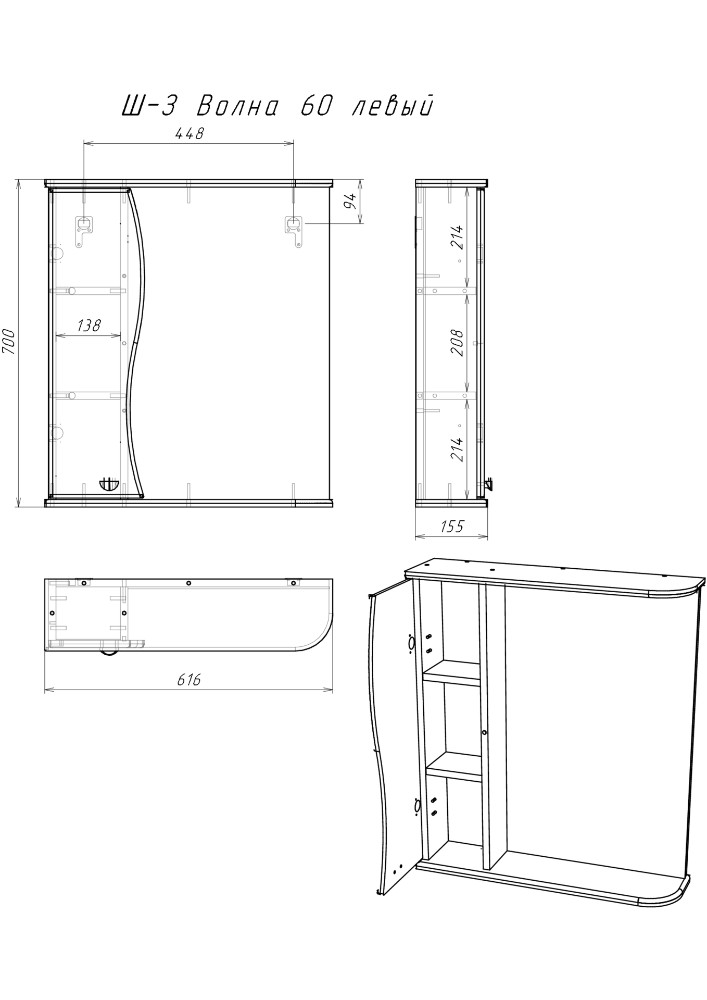 Габариты (ШхВхГ): 615х700х155 мм