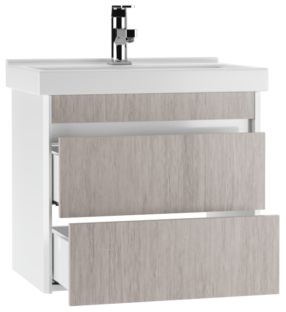 Подвесная тумба под умывальник "Fest 60" UNO с 2-я ящиками В2 Домино (дуб серый)