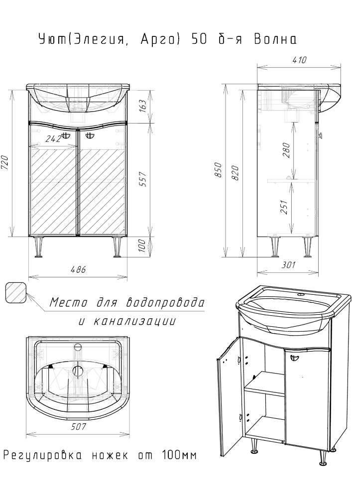 Тумба под умывальник "Домино Уют 50" Волна Айсберг без ящика
