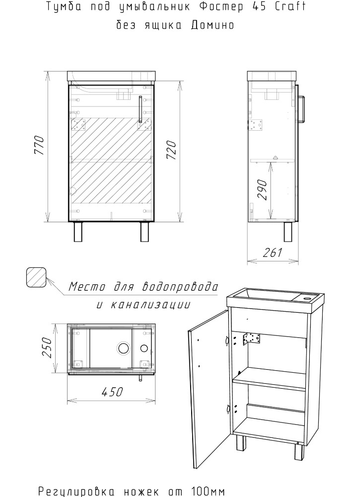 Тумба под умывальник "Форест 45" Craft без ящика (серый)