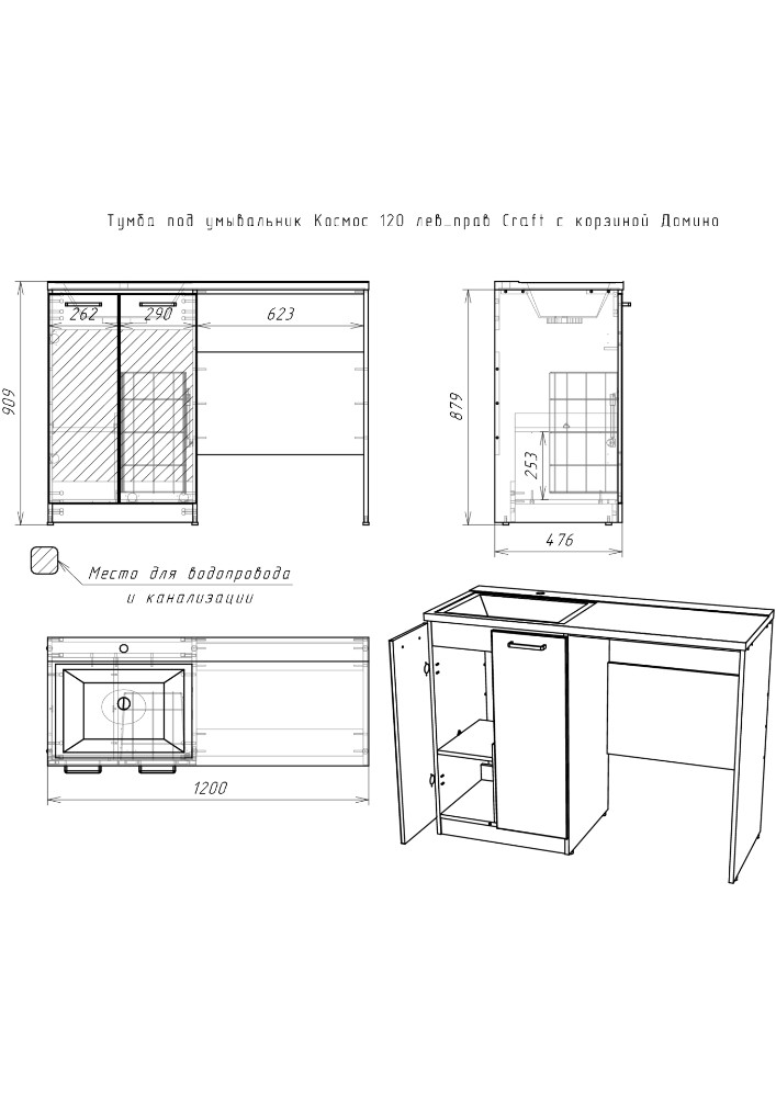 Тумба под умывальник "Космос 120" с корзиной Craft