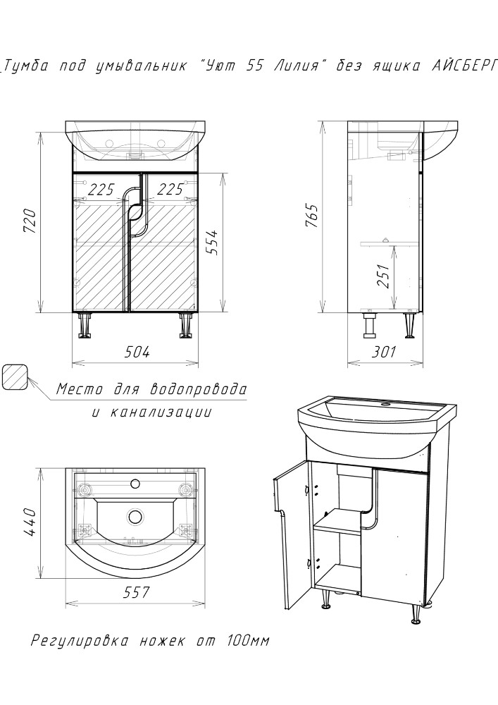 Тумба под умывальник "Уют 55" Лилия Айсберг (без ящика)