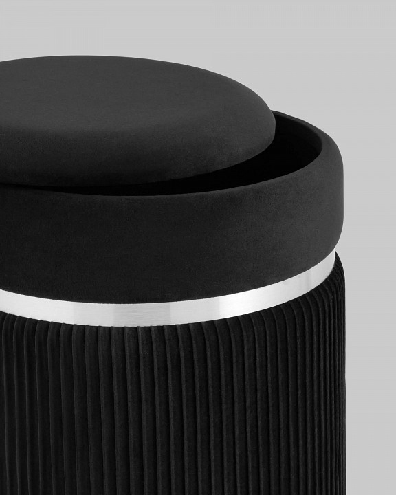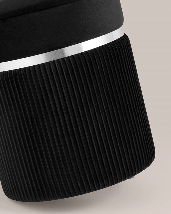 Лаконичная модель пуфа-сундука в обивке из мягкого велюра, которая дополнит интерьер вашего дома. Обивка красиво украшена декоративными оборками и металлическим ободком в серебряном цвете. Под сиденьем имеется ящик для хранения различных мелочей. В основании предусмотрены специальные подпятники, которые делают пуф-сундук более устойчивым и предотвращают скольжение.
