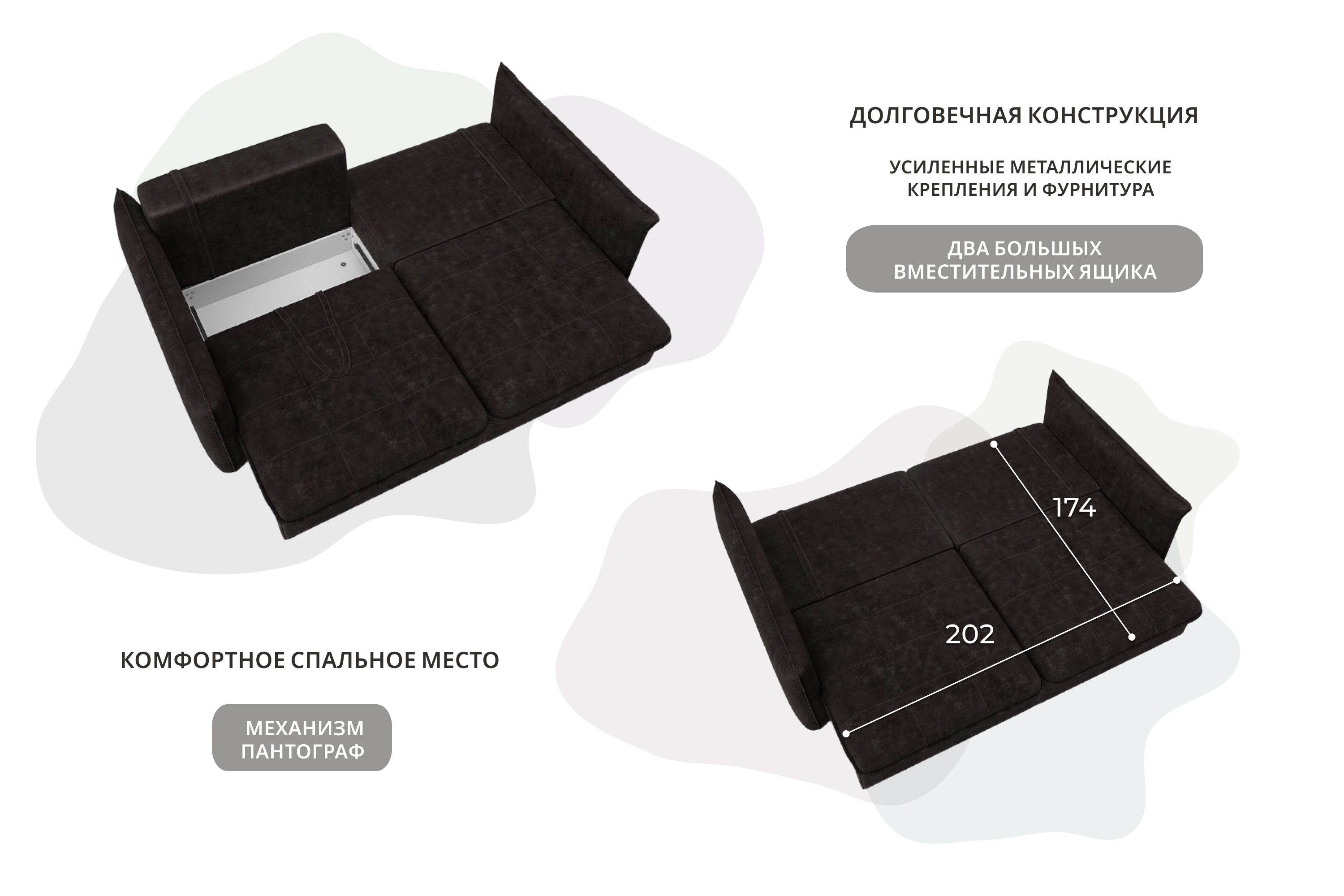 Спальное место: 1740х2020 мм.