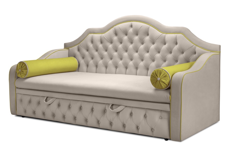 Софа Инфинити идеальный вариант для спальни и детской комнаты. Спинку украшает каретная стяжка, которая сделает благородным Ваш интерьер. Для создания особого шарма, применяются пуговицы, которые можно заменить на пуговицы-стразы. Удобный механизм раскладки "Дельфин", дает полноценное и ровное спальное место, что придает комфорт вашему сну. Элегантные подушки-валики идут в комплекте. Задняя спинка обшита технической тканью, при необходимости можно дополнительно заказать изготовление в основной ткани. В наполнении матраса независимый пружинный блок, латекс. Каретная стяжка на царге и спинки софы. Подушки-валики (2 шт) приобретают отдельно.