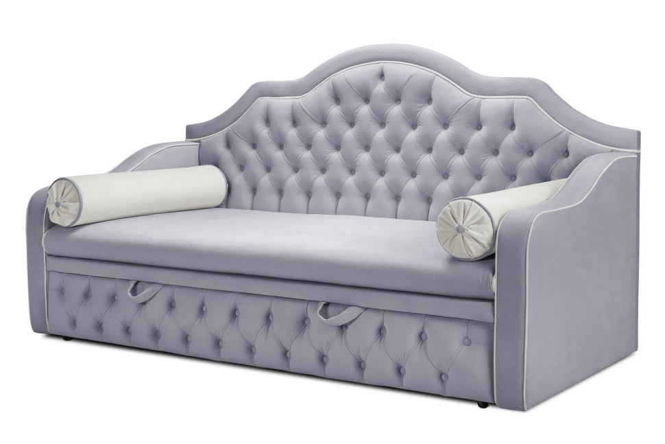 Софа Инфинити идеальный вариант для спальни и детской комнаты. Спинку украшает каретная стяжка, которая сделает благородным Ваш интерьер. Для создания особого шарма, применяются пуговицы, которые можно заменить на пуговицы-стразы. Удобный механизм раскладки "Дельфин", дает полноценное и ровное спальное место, что придает комфорт вашему сну. Элегантные подушки-валики идут в комплекте. Задняя спинка обшита технической тканью, при необходимости можно дополнительно заказать изготовление в основной ткани. В наполнении матраса независимый пружинный блок, латекс. Каретная стяжка на царге и спинки софы. Подушки-валики (2 шт) приобретают отдельно.