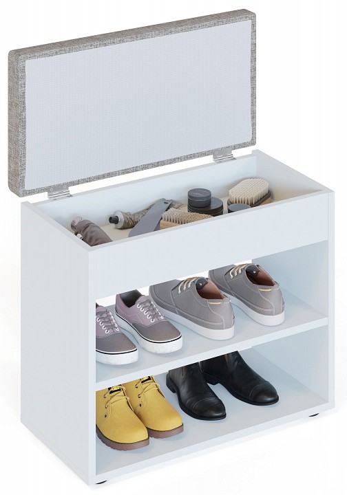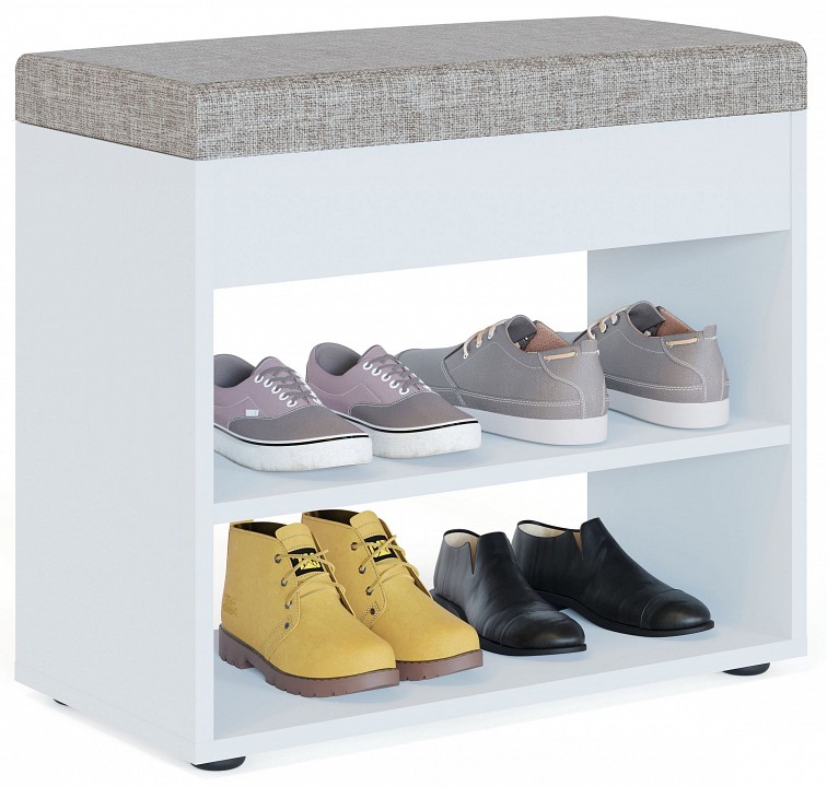 Банкетка-стеллаж для обуви ТО-31 разноцветная серо-бежевый белый шагрень 600x296x533.