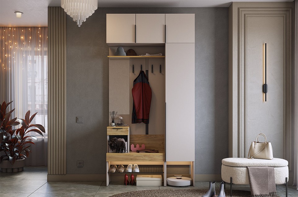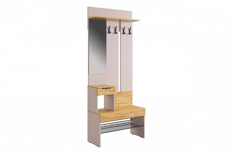 Стенка для прихожей Баско К4 разноцветная кашемир, дуб крафт золотой 1200x349x2350.