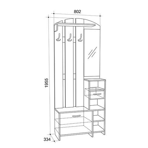 Стенка для прихожей Мила разноцветная дуб млечный 802x344x1945.