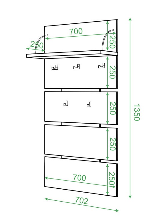 Габариты (ШхГхВ): 702x265x1350 мм.