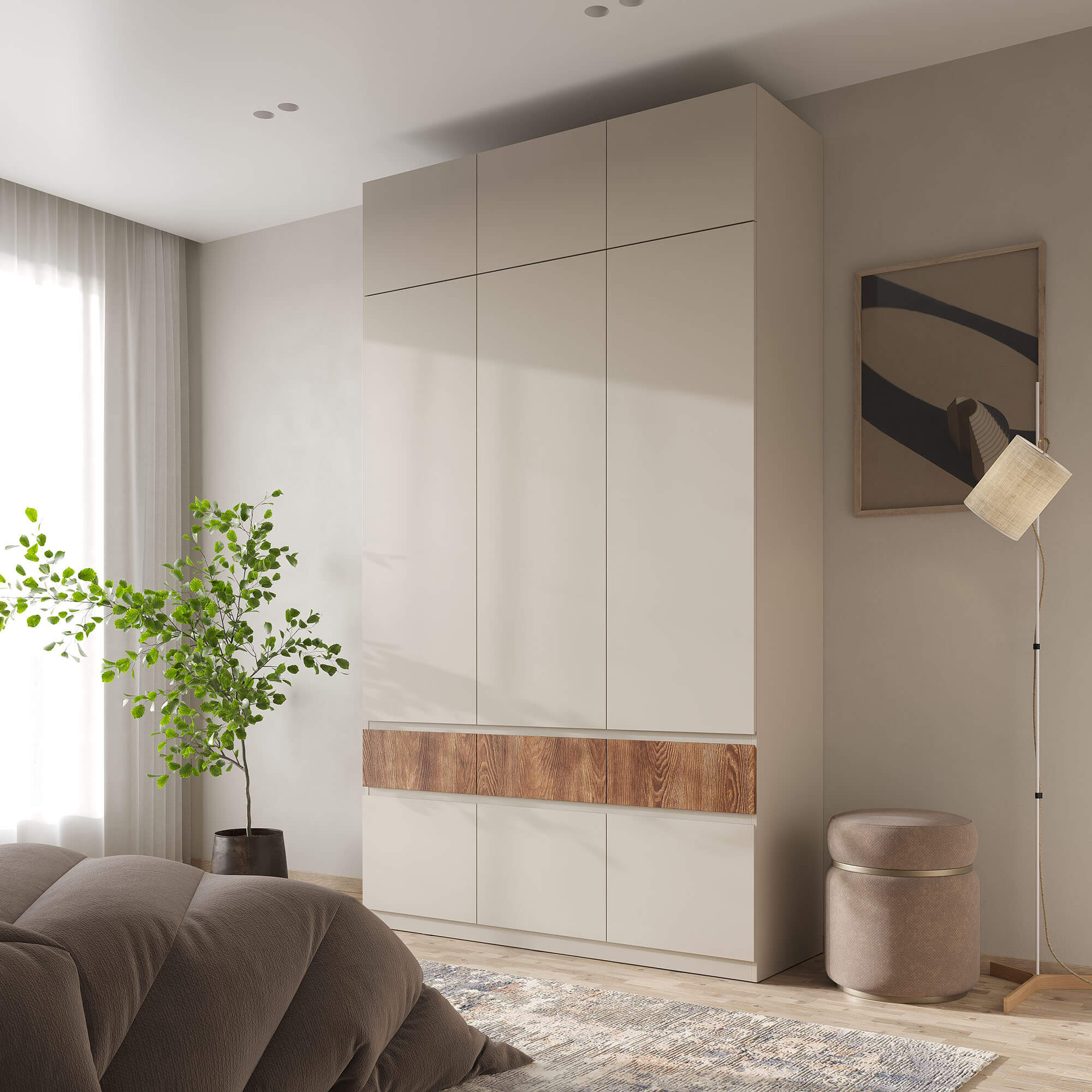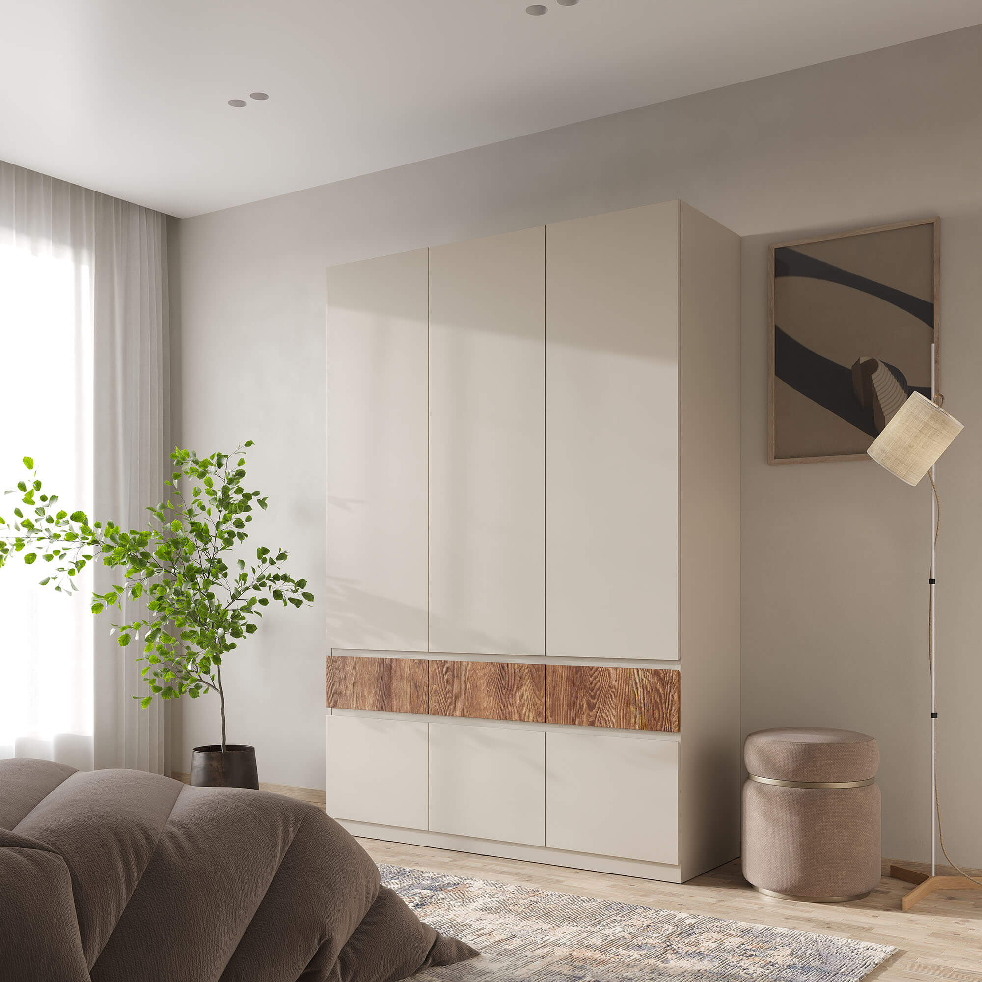 Шкаф НК PIANO 3-х створчатый Кашемир/Каштан
