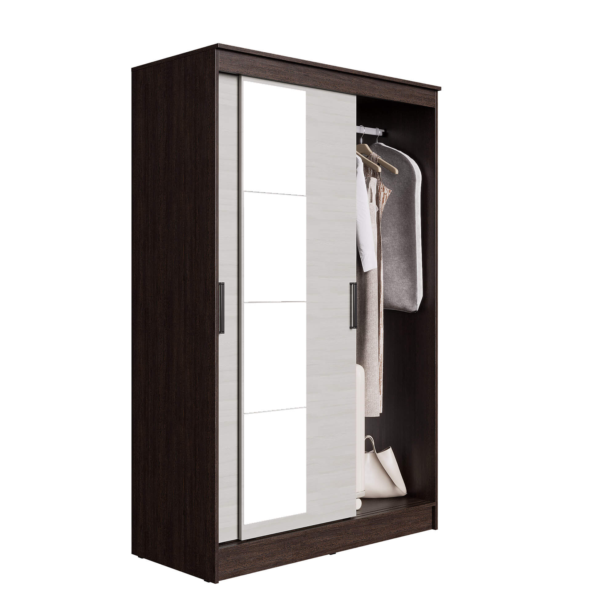 Шкаф-купе "Элегант" от ЭРА - это сочетание функциональности и эстетики. Шкаф-купе "Элегант" выполнен в лаконичном дизайне, который будет гармонично смотреться в интерьере в стиле лофт или минимализм. Особенностью шкафа является наличие зеркала на фасаде. Это не только визуально увеличивает пространство, но и добавляет изысканности в общий дизайн. Внутреннее пространство шкафа разделено на две секции. В одной из них расположена штанга для вешалок, а в другой - три полки. Это позволяет удобно разместить одежду и аксессуары. Двери шкафа-купе оснащены раздвижной системой, что обеспечивает удобство использования и экономит пространство. Материал корпуса и фасада - ЛДСП, а фурнитура выполнена из пластика. Это гарантирует прочность и долговечность шкафа, а также простоту в уходе. Выбирая шкаф-купе "Элегант" от ЭРА, вы получаете не только стильный и функциональный элемент интерьера, но и гарантию качества от российского производителя.
