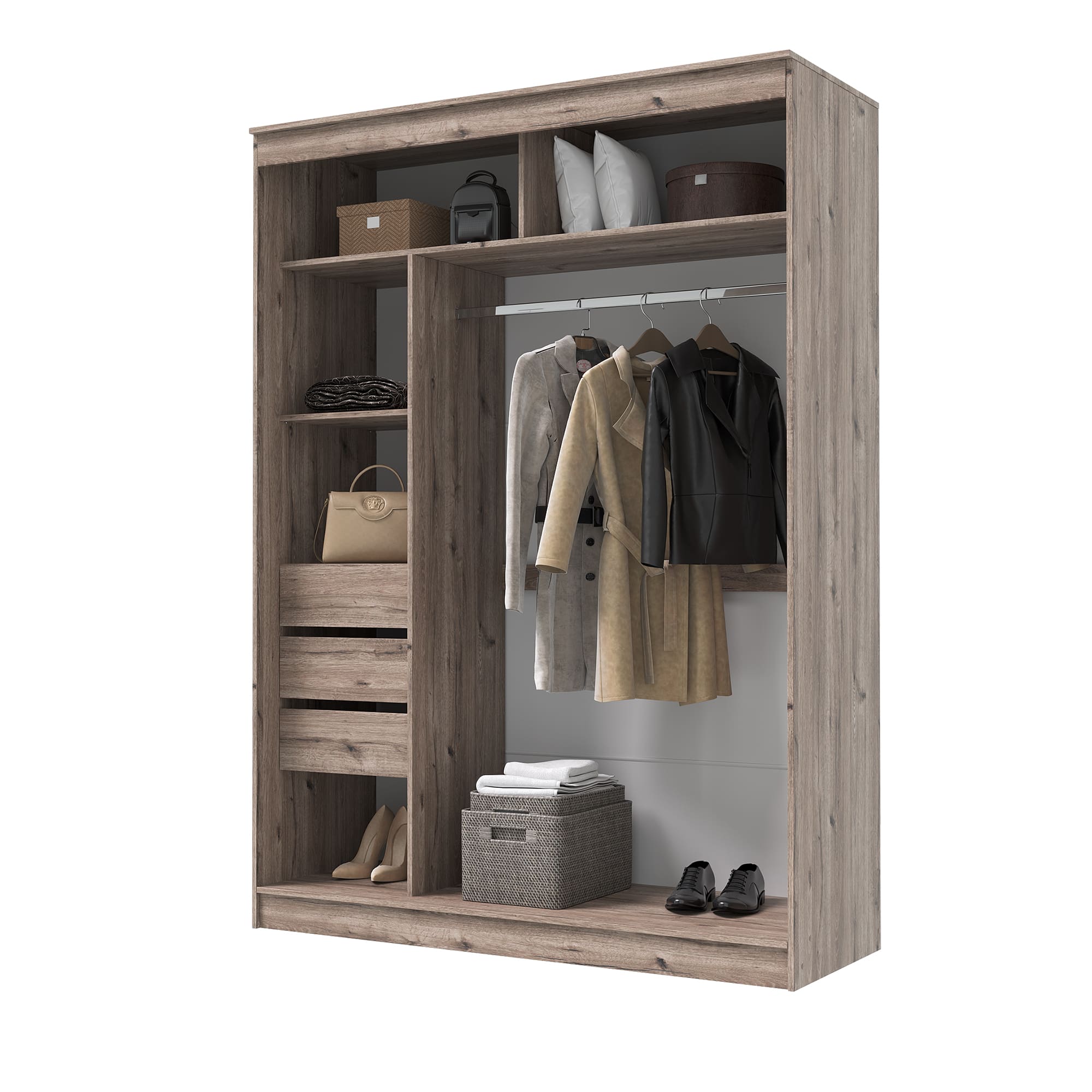 Настолько вместительный, что можно хранить не только одежду, но и различные бытовые вещи.