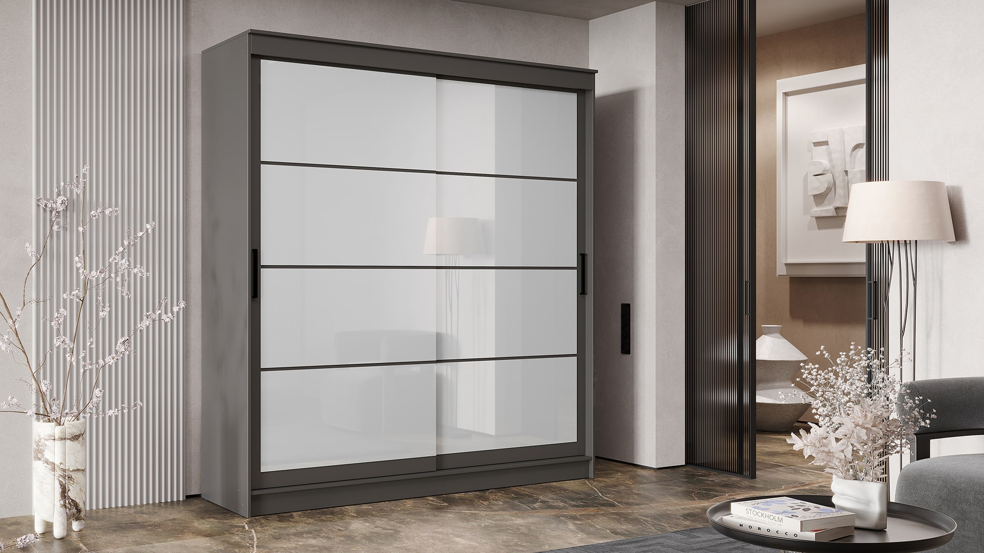 Шкаф-купе ГРАНД 1 2,0 Графит/Лакобель белый