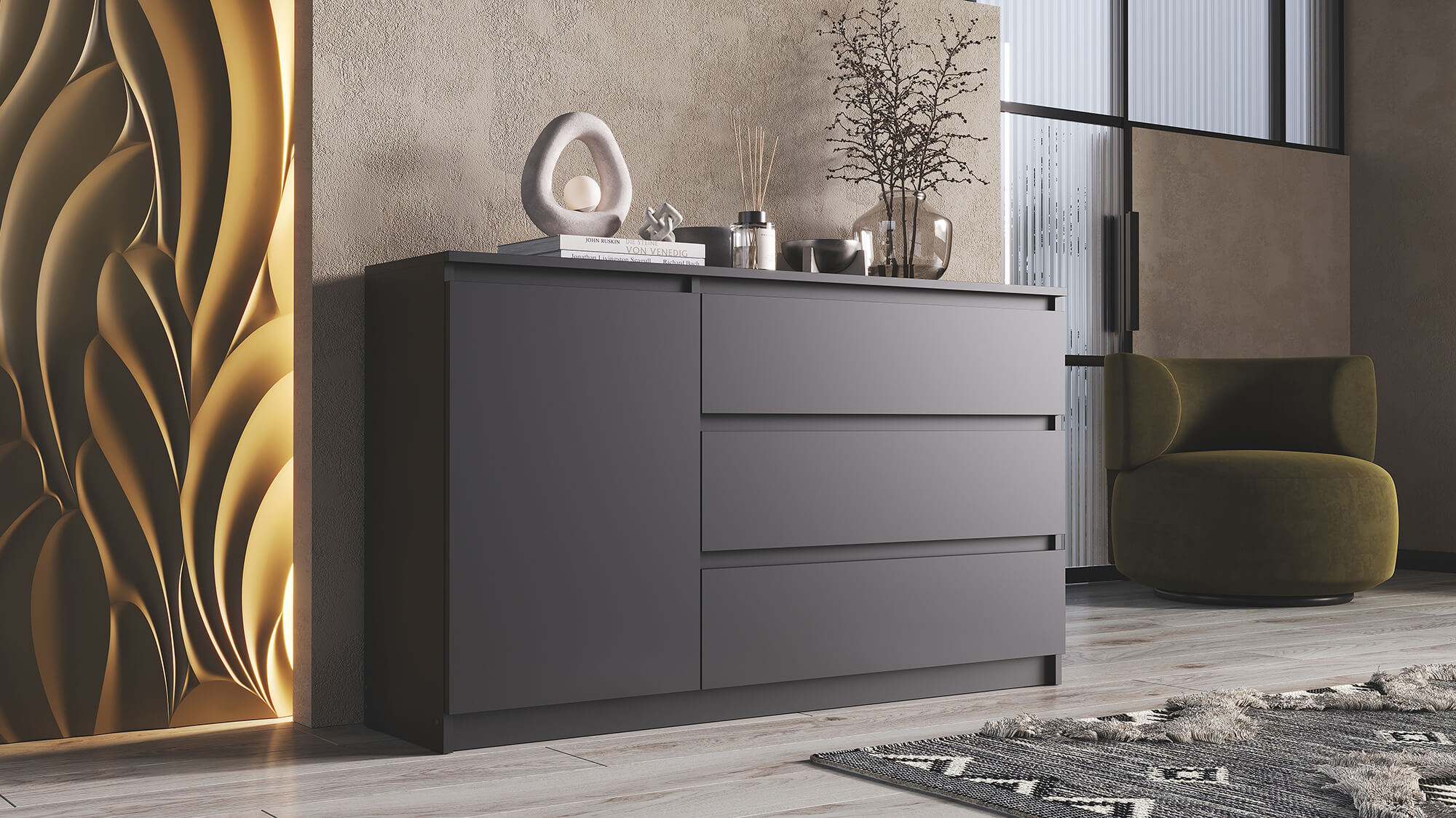 Комод ВЕГА 1Д-3Я Графит