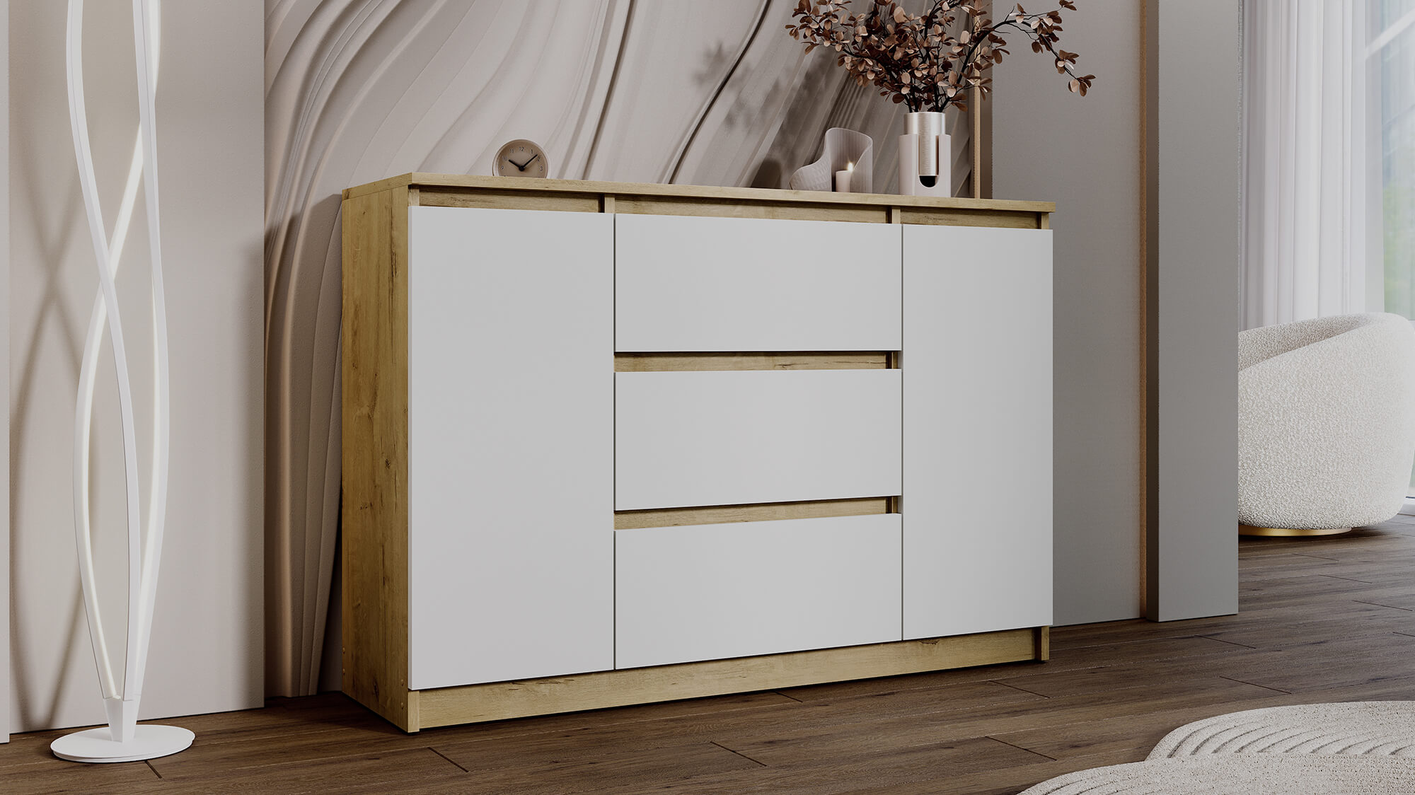 Комод ВЕГА 2Д-3Я Дуб Вотан/Белый гладкий