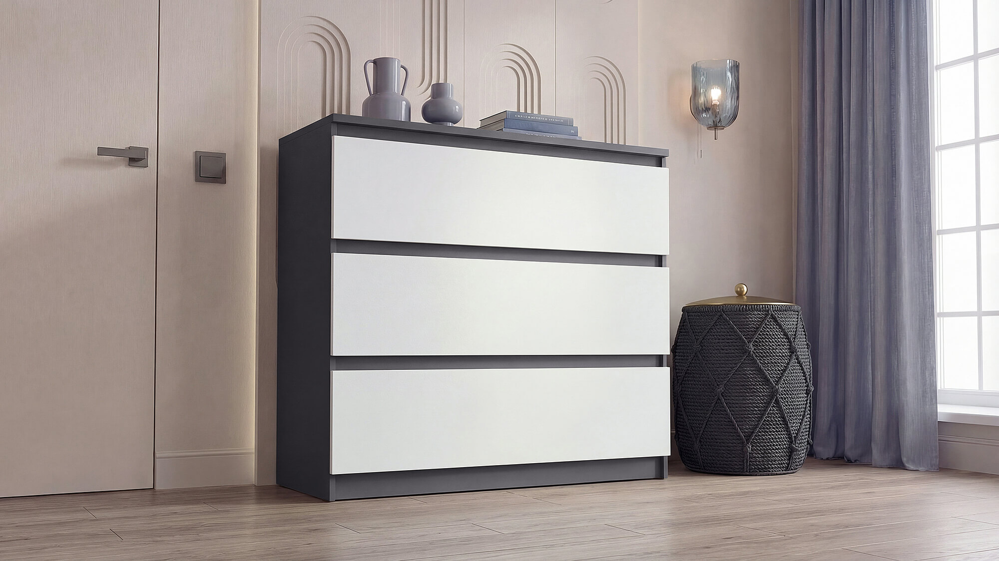 Комод ВЕГА 3Я Графит/Белый гладкий