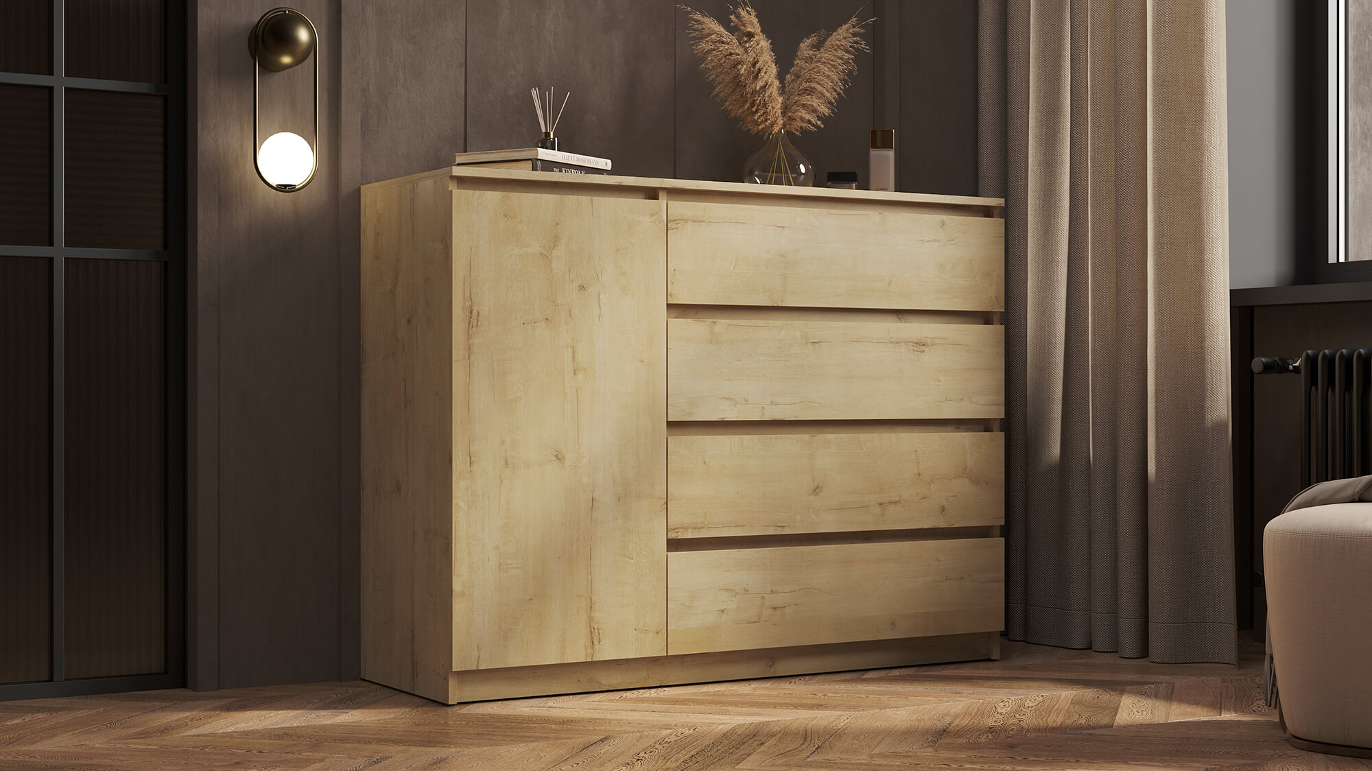 Комод ВЕГА Люкс 1Д-4Я Дуб Вотан