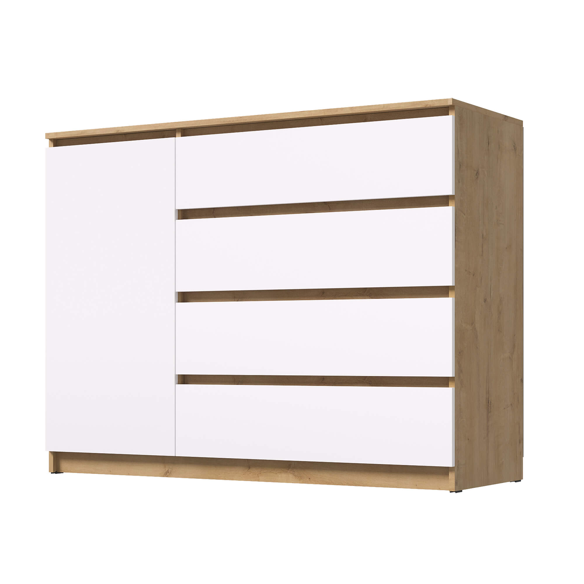 Комод ВЕГА Люкс 1Д-4Я Дуб Вотан/Белый гладкий