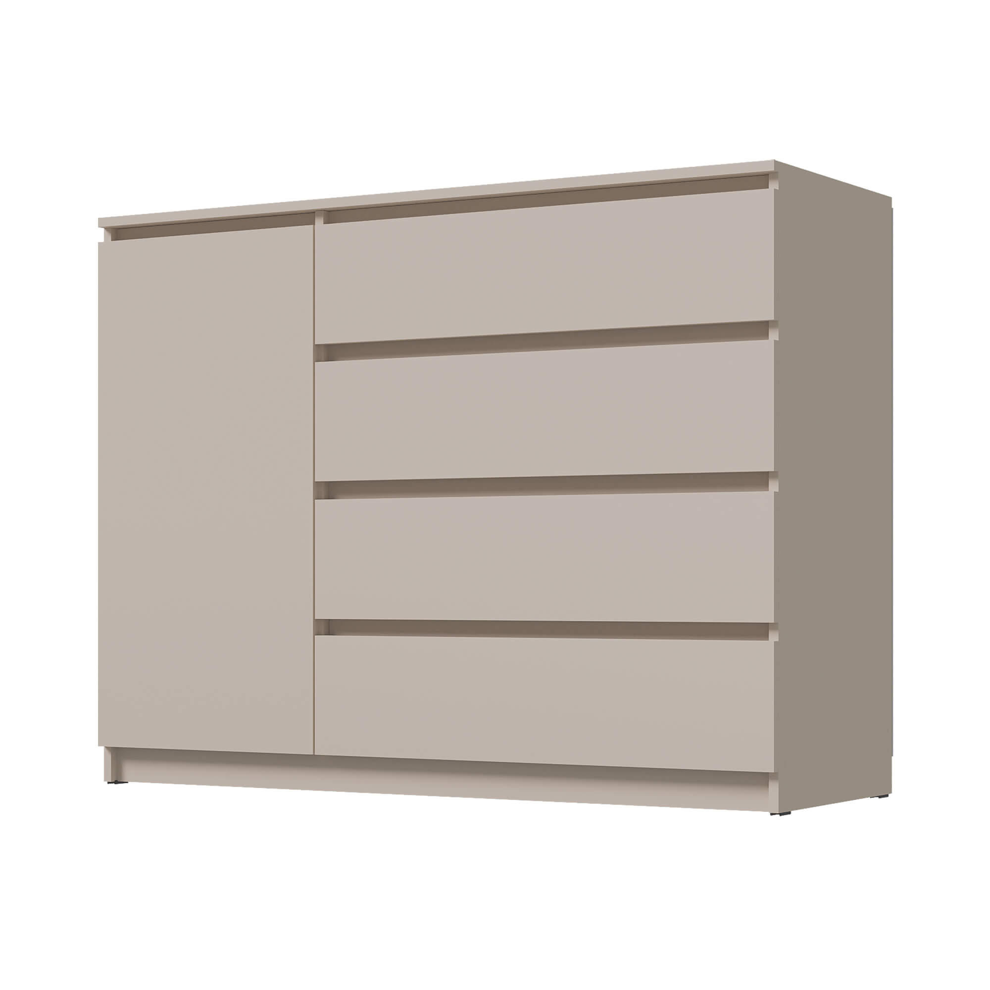 Комод «Вега» — стильное и практичное решение для организации пространства в вашем доме. Модель сочетает современный дизайн с продуманной функциональностью: вместительные ящики и отделение за дверцей позволяют аккуратно хранить одежду, постельное бельё или бытовые мелочи.