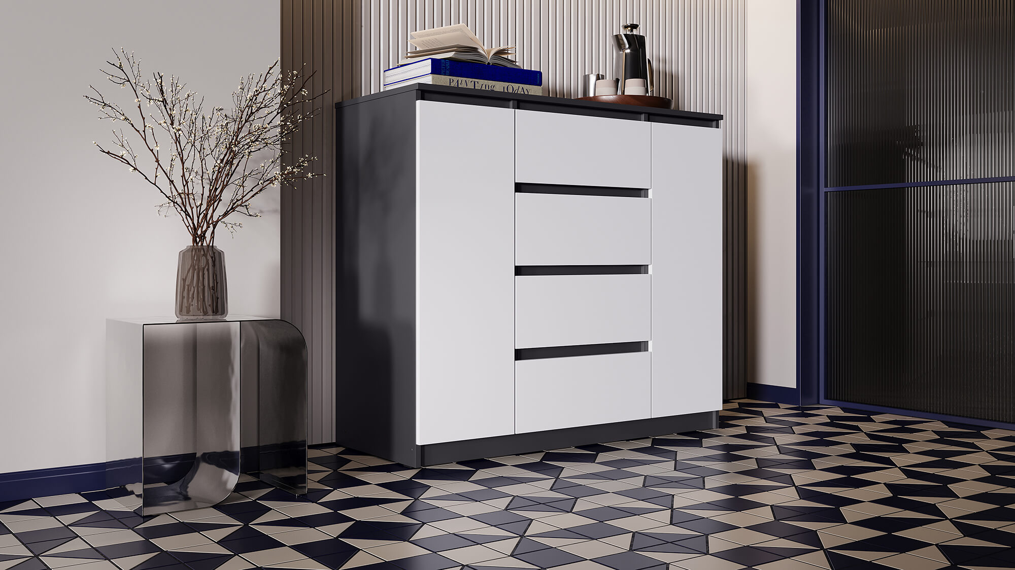 Комод ВЕГА Люкс 2Д-4Я Графит/Белый гладкий