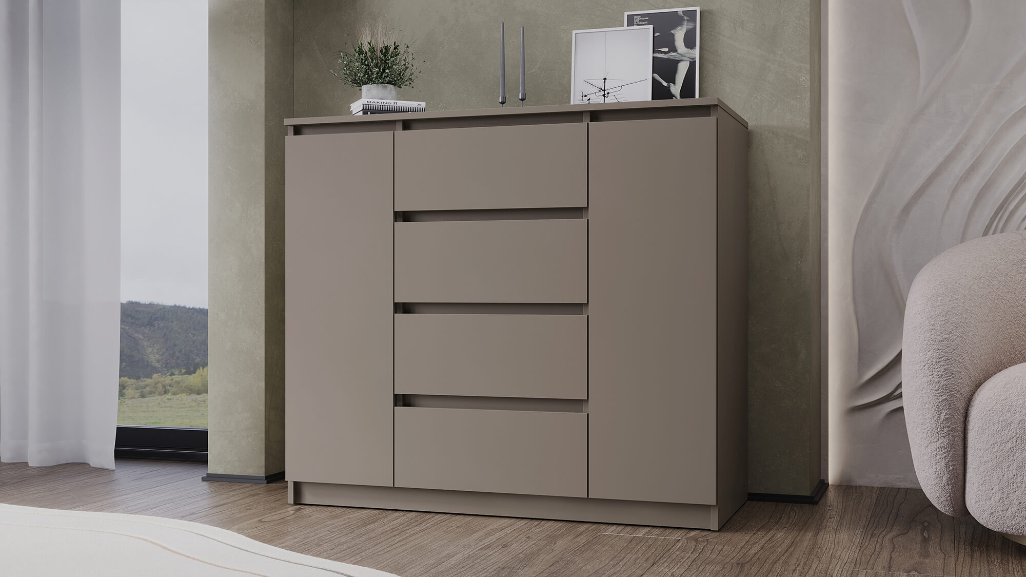 Благодаря лаконичному внешнему виду комод органично впишется в интерьер спальни, гостиной или прихожей. Прочные материалы и надёжная фурнитура гарантируют долгий срок службы, а чёткие линии и стильная цветовая гамма подчеркнут эстетику вашего дома.