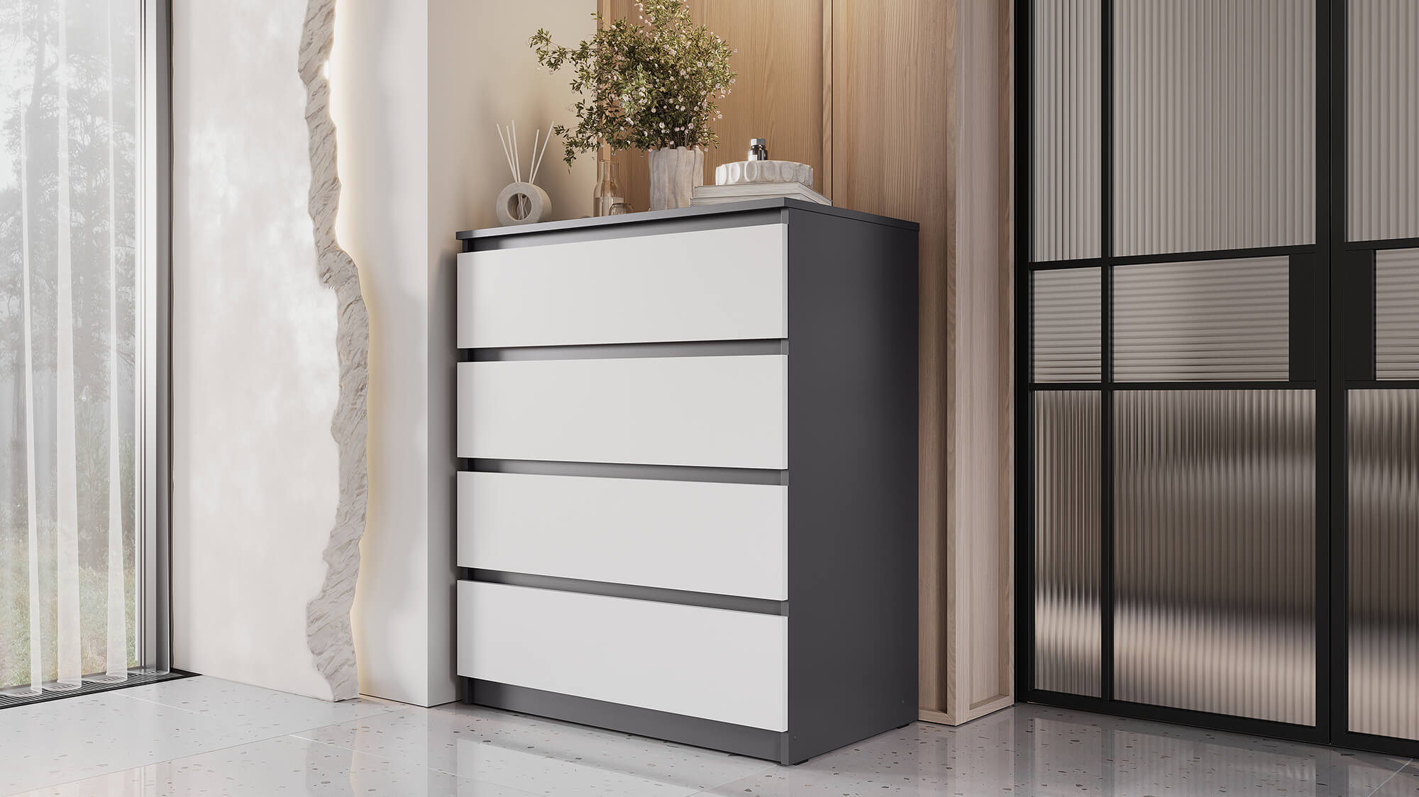 Комод ВЕГА Люкс 4Я Графит/Белый гладкий