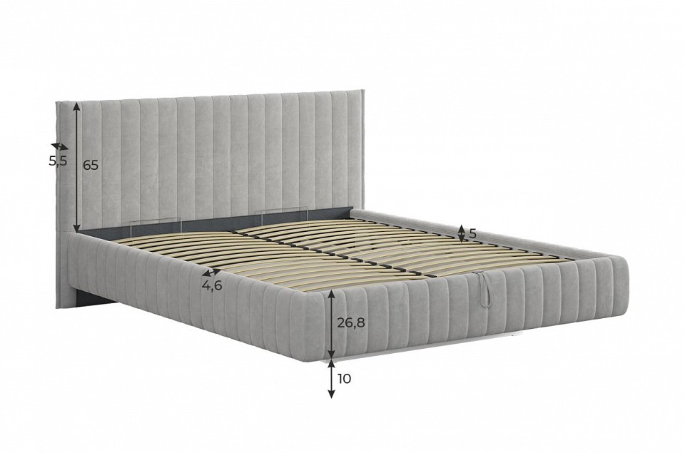 Состоит из: мягкого каркаса Каркас кровати «Твикс» сочетает в себе красоту и практичность, что делает его идеальным вариантом мягкой мебели для украшения вашей спальни. Дизайн данной двухспальной кровати позволяет легко ее адаптировать в интерьер спальни, при этом создавая уют комнаты. Мягкое изголовье обеспечит дополнительный комфорт и безопасность. Какрас кровати «Твикс» легко собрать благодаря упрощенному процессу сборки с использованием небольшого количества крепежных элементов. Рекомендуемый размер матраса 1600х2000