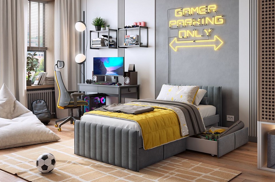 Состоит из: мягкого каркаса, выкатные ящики. Сборка: универсальная. Мягкая кровать 'Твикс' – это сочетание комфорта, стиля и функциональности, идеально подходящее для современного интерьера. Мягкое изголовье обеспечивает дополнительную поддержку для спины во время чтения или отдыха. А мягкие корпус и фасады ящиков, обтянутые высококачественным велюром, создают уютную атмосферу и дополнительную безопасность Кровать оснащена удобными выкатными ящиками на роликах высотой Н30, что позволяет легко хранить игрушки, постельное белье или другие вещи, сохраняя порядок в комнате. Армированное основание из ЛДСП обеспечивает надежную поддержку матраса и гарантирует удобный сон. Дизайн кровати 'Твикс' легко вписывается в любые интерьеры – от минималистичных до классических, а разнообразие цветовых решений позволяет выбрать оптимальный вариант для вашего домашнего пространства. Откройте для себя не только практичность, но и стиль с кроватью 'Твикс'! Матрац в комплектацию кровати не входит.