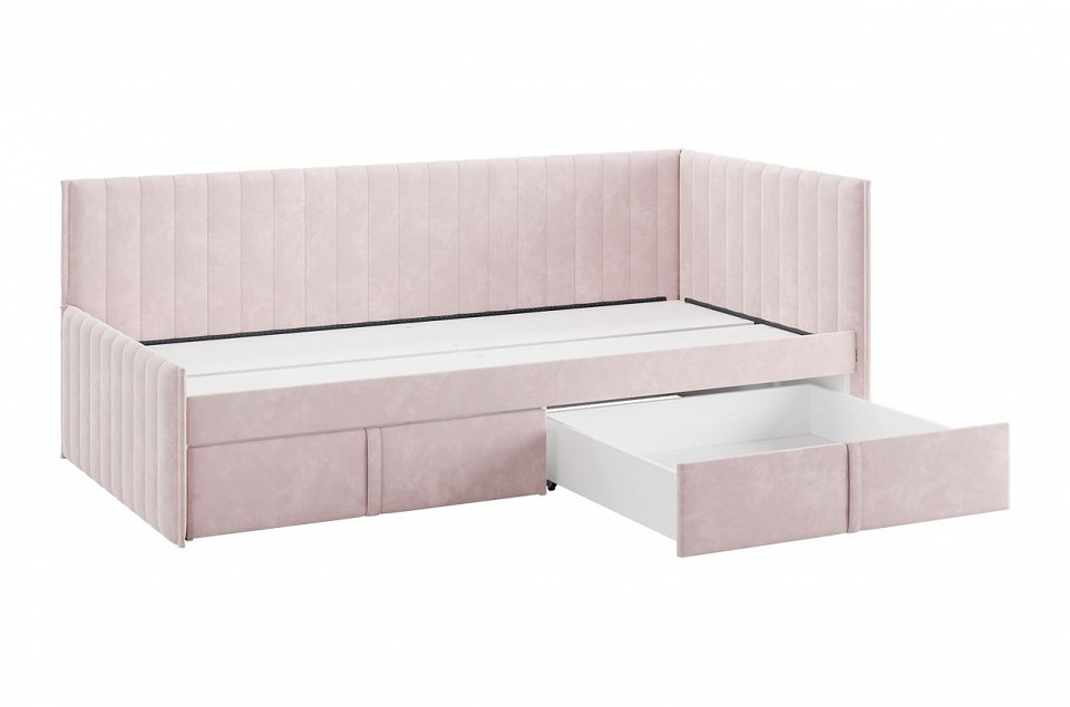 Состоит из: мягкого каркаса, выкатные ящики. Сборка: универсальная. Кровать с ящиками Твикс (Тахта) 90х200 см — это стильное и функциональное решение для вашего интерьера. Она сочетает в себе элегантный дизайн и практичность. Удобное мягкое изголовье и корпус делают эту кровать не только комфортной, но и безопасной для использования в любых условиях. Корпус, изголовье и задняя боковина выполнены из прочного ДСП толщиной 16 мм, ППУ и велюра, что обеспечивает долговечность и надежность конструкции. Мягкие фасады выкатных ящиков, обтянутые благородной велюровой тканью, добавляют элемент роскоши и создают уютную атмосферу в комнате. Вместительные выкатные ящики предоставляют дополнительные возможности для хранения постельного белья, одежды или других важных вещей, что особенно актуально для небольших помещений. Настил из ЛДСП гарантирует удобство и надежность использования. Кровать Твикс — это идеальное решение для тех, кто ценит комфорт, практичность и современный дизайн. Матрац в комплектацию кровати не входит.