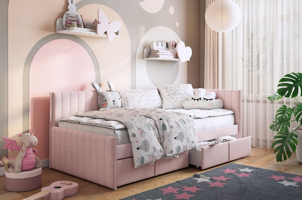 Кровать односпальная Твикс разноцветная нежно-розовый 2120x1015x780