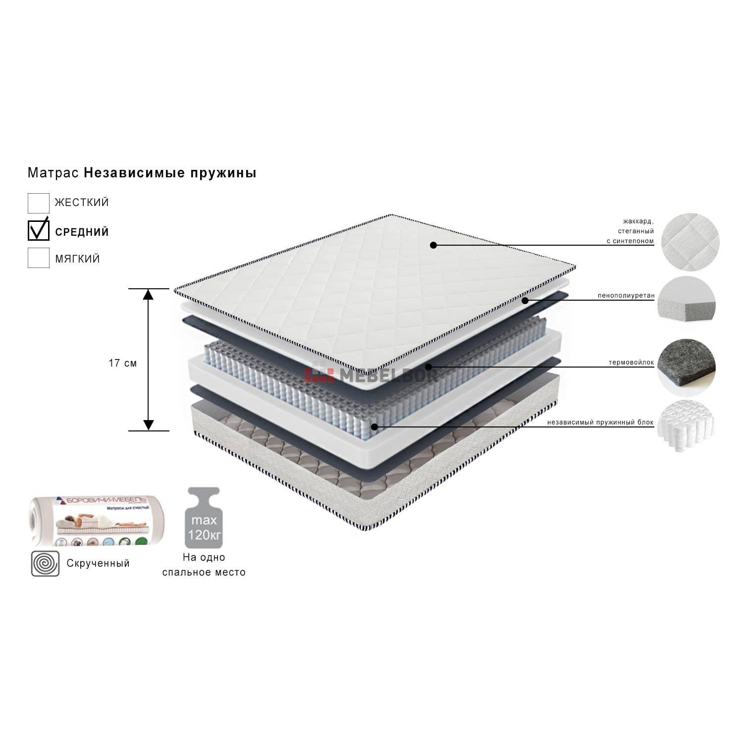 - Жесткость: Средней жесткости.